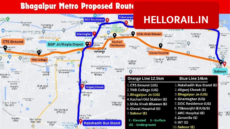 • Blue Line: Runs from Bhagalpur to Vastu Vihar via Mojahidpur and Maheshpur.