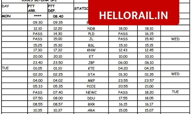 Schedule and Timings for Valsad – Danapur Special