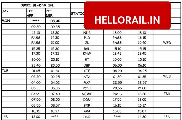 Train 09025 departs Valsad at 08:40 AM and reaches Danapur at 12:00 PM the next day. On the return journey, Train 09026 leaves Danapur at 02:30 PM and arrives in Valsad at 09:30 PM the following night. Key halts include Bhestan, Nandurbar, Bhusaval, Itarsi, Satna, Prayagraj Chheoki, and Pt. DD Upadhyaya Jn.