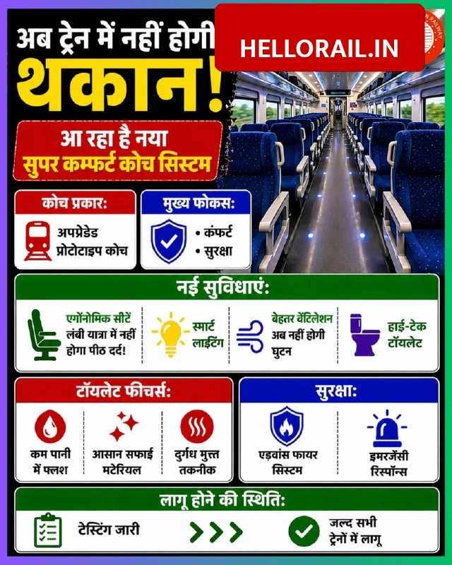 Indian Railways is upgrading its train coaches to make travel more comfortable and safe for passengers. Union Railways Minister Ashwini Vaishnaw recently shared details about new coach designs that focus on reducing travel fatigue. These updates include better seating and high-tech toilet facilities to improve hygiene.