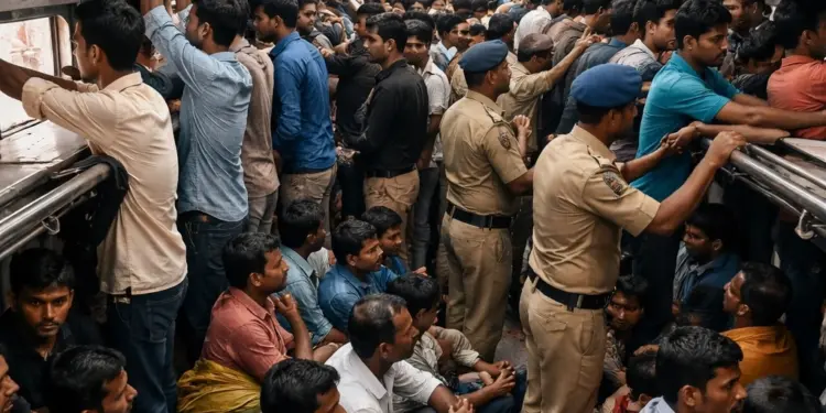 The situation at Bhagalpur Junction turned chaotic this weekend as massive crowds surged to board the Vikramshila Express (12367). Despite the train having a seating capacity of only 400 passengers across four general coaches, official reports confirmed that over 1,000 people boarded these compartments. Passengers began lining up as early as 5:00 AM for the 11:55 AM departure, creating a situation where there was absolutely no room to even stand inside.