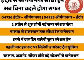 Indian Railways has announced a new weekly special train service between Indore Laxmi Bai Nagar and Shri Ganganagar to manage...
